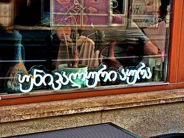 A Georgian & Ukrainian restaurant, near the University. The Georgian language appears to