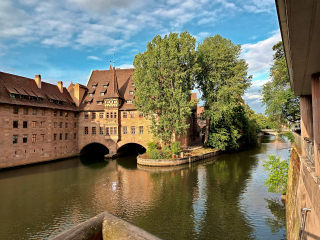 The heart of Nuernberg, crossing the river Pegnitz.