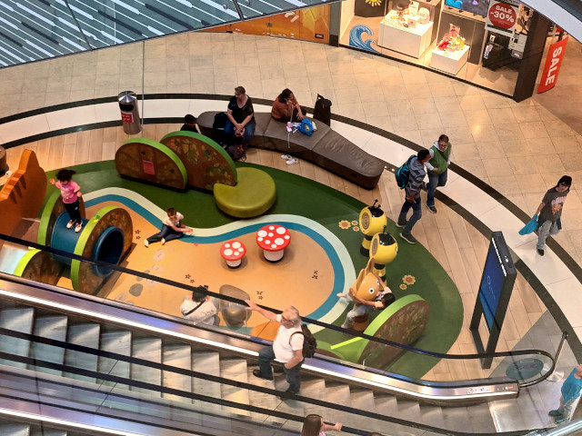 At the local mall - a former fountain turned into a kiddie play area.