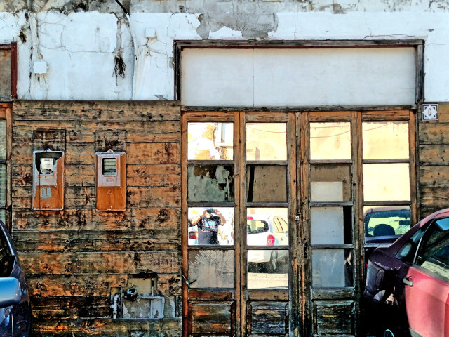 A low-profile selfie where a restaurant used to be in more prosperous times.