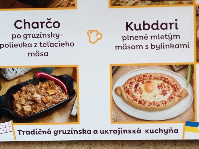 by religion in these parts). This Slovak sign describes Georgian and Ukrainian dishes.