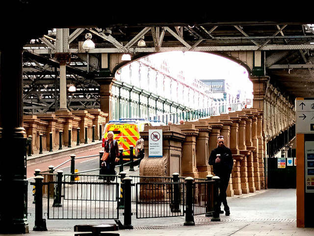 Bridge Station, the city's main rail hub. The steps are adjacent to the Scotsman