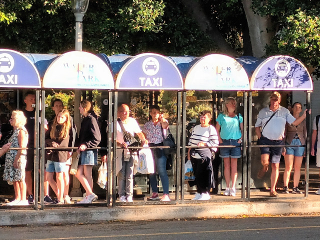 Waiting for a cab at the taxi station. (The drivers must be jumping - usually I see a dozen