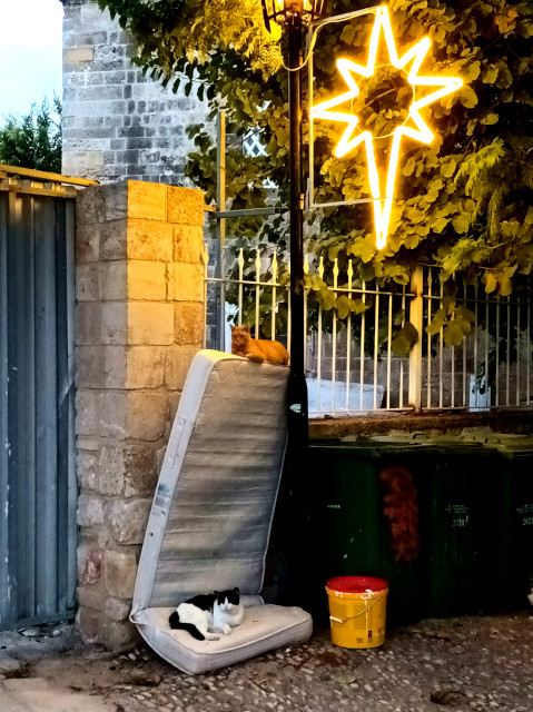 This litle square is in my neighborhood in the Old City. Usually the cats