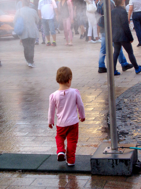 The city puts these misty arches at popular spots around town. They don't so much